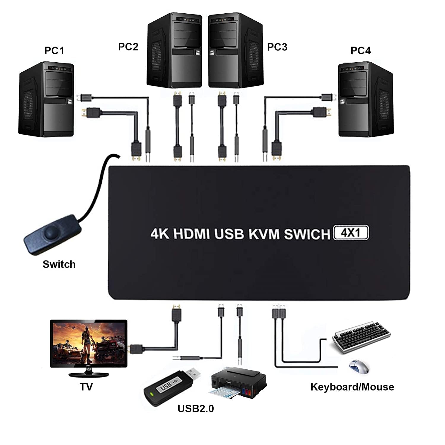 HDMI KVM switch four groups of high-definition Audio and video source and USB interface implementation free switch, Adaptive EDID , can adapt to a variety of complex application environments.The equipment has excellent image processing and transmission capacity, make the output signal is more smooth and steady, is a reliable, high performance and efficient way of HDMI USB switch.