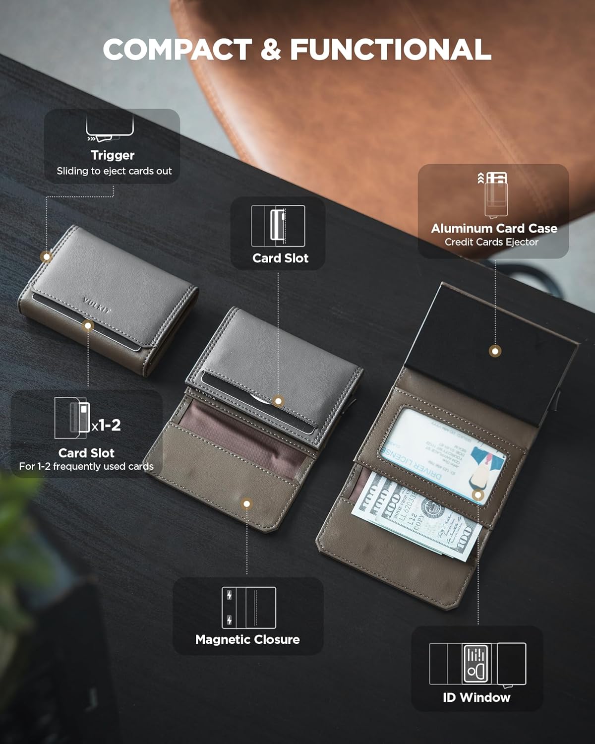 | Wallet Compartment Type | Credit Card, ID Card, Paper Money |