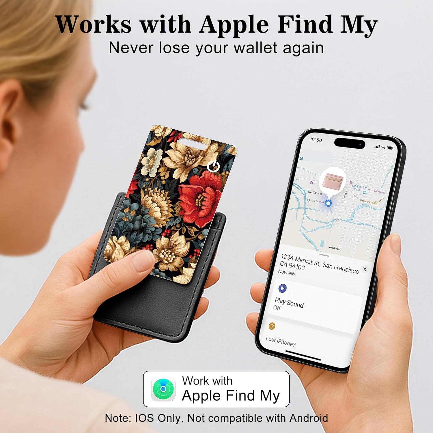 "Discover the ultimate solution for never losing your valuables with our Find My Tracker—a sleek, high-tech card designed to fit perfectly in your wallet, luggage, or passport holder. This wallet locator tracker card combines style, functionality, and cutting-edge technology, making it ideal for travel, daily commuting, or busy lifestyles. With our GPS card for wallet, you can track your wallet anytime using your iOS device. Simply connect it with the Find My app to see real-time location updates, play a sound, or navigate directly to your items—turning “Where’s my stuff?” into “Got it!” in seconds. Perfect for busy offices, crowded cafes, or home environments. Never worry about missing items again. The credit card tracker emits a super-loud 100 dB alert, clearly audible even under blankets, inside bags, or hidden in backpacks. This wallet tracking card is your reliable assistant for keys, laptops, wallets, and other valuables. Designed for convenience, our wallet GPS tracker is ultra-thin and lightweight, sliding effortlessly into wallets, purses, backpacks, or luggage without adding bulk. Its rechargeable battery supports wireless charging, providing months of reliable standby, while IP68 waterproof protection ensures durability against splashes, rain, or brief immersion. Make it uniquely yours with a personalized design—choose your favorite pattern or initials. Our tracking wallet allows you to instantly identify your belongings and also makes a perfect gift for friends, family, or coworkers. All location data is fully encrypted for privacy, and you can set personal contact info for lost items with ease. Whether you need a wallet with tracker for men, a GPS wallet tracker, or a versatile key smart wallet tracker card, our device provides peace of mind while keeping your valuables secure, stylish, and easily accessible. From everyday errands to international travel, this is the only Find My Card you’ll ever need."